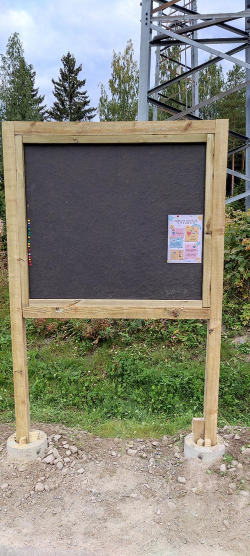 Syksyllä 2022 Vuorelaan saatiin kylätaulu ja ilmoitustaulut - penkkejäkin hankittiin, lähdepumpun asennus saa vielä odottaa...